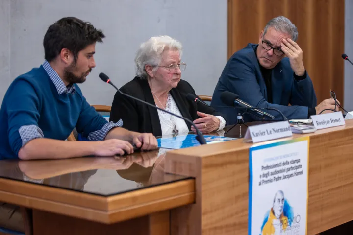 "Mio fratello avrebbe detto con ogni mezzo, con umiltà e sincerità, cercate il modo di intraprendere un cammino di pace, a prescindere dalle difficoltà". La sorella di Jaques Hamel, Roselyne lo dice ai giornalisti riuniti per parlare del premio intestato a suo fratello. Un sacerdote vittima della violenza e del fondamentalismo.