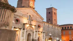 Nella penombra si snoda una piccola coda, ragazzi che in silenzio, in preghiera nella basilica di Santa Maria sopra Minerva a Roma.