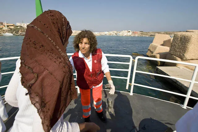 La seconda cosa è tranquillizzarli. Sulla nave io non sono vestita da suora, non sanno chi sono, magari lo scoprono dopo in chiesa a Lampedusa, e allora mi chiedono: dove andiamo? Che facciamo? Che cosa ci aspetta? E allora oltre fare il medico cerco di portare una parola di conforto.
