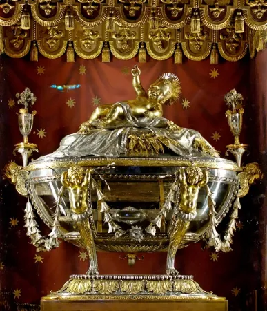 Nella basilica di Santa Maria Maggiore è conservata una reliquia da sempre legata alla religiosità dei romani e dai secoli più lontani oggetto di preghiera dei pellegrini di ogni parte del mondo. Sono i resti del “cunabulum”, la “sacra culla”, la mangiatoia in cui, secondo i Vangeli, Gesù venne deposto appena nato, proprio come riporta il Vangelo di Luca.