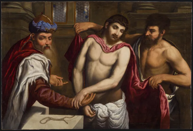 Il “Cristo e Pilato” di Paris Bordone proviene da una collezione italiana e, pur essendo stato pubblicato nell’ultima monografia del pittore, non è mai stato esposto al pubblico in precedenza. Il restauro ha restituito piena leggibilità all’opera e dato piena conferma dell’attribuzione. Bordone ha inventato questa composizione così originale nella piena maturità e, dato il successo, ha prodotto una serie di repliche e varianti. Le fonti citano opere simili in due prestigiose collezioni, vale a dire presso il cardinale di Lorena quando Bordone andò a Parigi nel 1559, e a Venezia presso la collezione Lando, una prestigiosa famiglia veneziana che diede un doge a metà del Cinquecento.