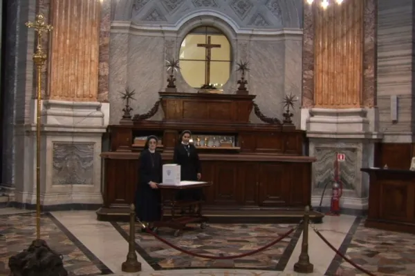 Ma alle 16.45 l’appuntamento è con la liturgia stazionale. Certo purtroppo oggi è difficile arrivare alla basilica solo per pregare. Turbe di turisti in fila si mischiano ai fedeli, controlli di polizia, e (come dice il professor Eugenio Russo a proposito di Santa Sofia a Costantinopoli) “la presenza asfissiante e ottusa di masse inconsapevoli di visitatori, copri vaganti e paganti, senza la minima cognizione con i loro comportamenti della sacralità dello spazio in cui si trovano”.