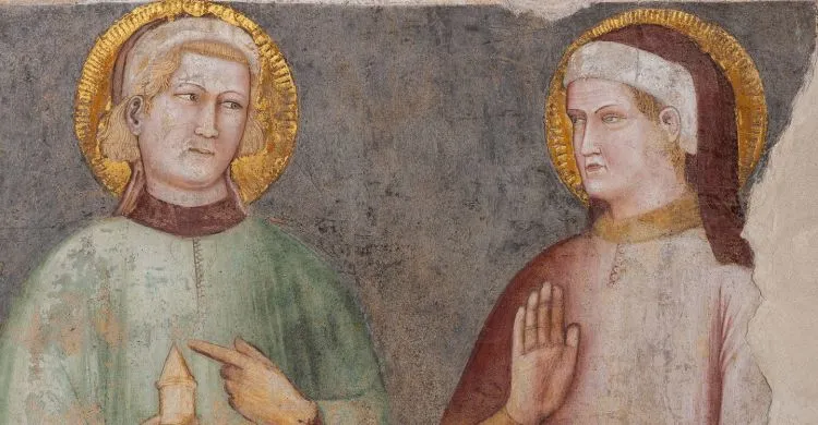 Al livello inferiore troviamo raffigurate quattro figure di Santi, tra cui san Bartolomeo. Sopra i quattro Santi, su uno strato di intonaco posteriore, si distende invece un’imponente, anche se frammentaria, Madonna in trono con il Bambino. I lavori di restauro hanno consentito di riportare alla luce l’intera composizione. Nella Sala del Capitolo sono state effettuate numerose analisi diagnostiche d’avanguardia: in particolare, ci si è concentrati sulle due porzioni di intonaco scoperte duranti i lavori effettuati prima del 1900, che rivelano due frammenti di una crocifissione, probabilmente eseguita da Giotto nella sala.