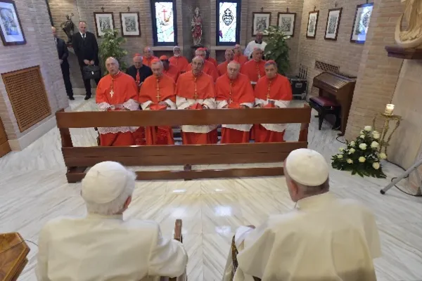 Come consueto, al termine della celebrazione del Concistoro, Papa Francesco e i nuovi cardinali si sono recati, con un pullmino, al Monastero "Mater Ecclesiae" per incontrare il Papa Emerito, Benedetto XVI.