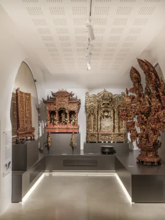 Molto ricca la collezione proveniente dalla Cina, composta da tessuti, ceramiche, bronzi, smalti, legni, giade, avori e dipinti. Altre sezioni aiutano poi il visitatore a incontrare le grandi tradizioni religiose e filosofiche asiatiche: buddhismo, taoismo e induismo.