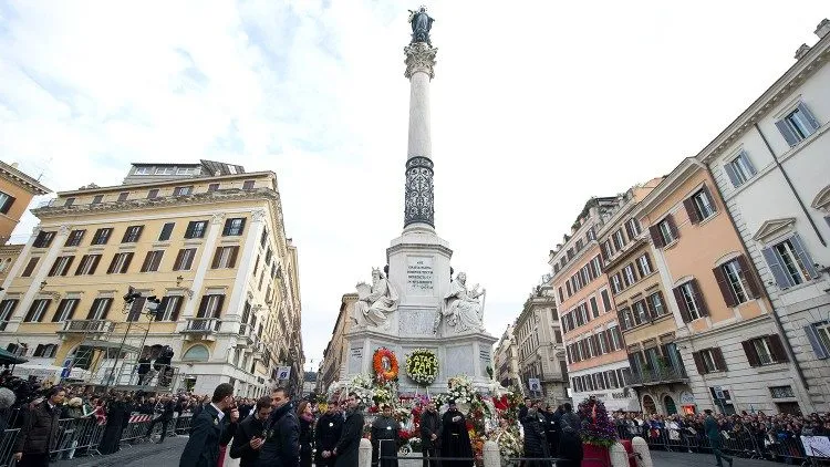 Non ci sarà Papa Francesco, e questo interrompe una tradizione di sessanta anni. Ma, intorno alla colonna dell'Immacolata di Piazza di Spagna, ci saranno i frati minori conventuali di piazza Santi Apostoli, per garantire accompagnamento spirituale a tutti i fedeli che vorranno comunque andare a rendere omaggio alla Madonnina di piazza di Spagna. E il cardinale Angelo de Donatis, vicario del Papa per la diocesi di Roma, ha scritto una preghiera di affidamento all'Immacolata, da poter pronunciare in famiglia.