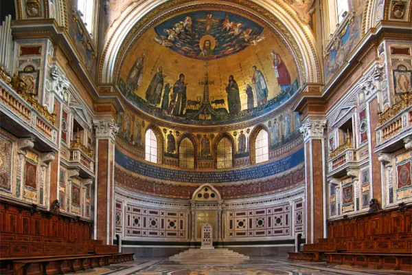 Le pareti della navata conservano delle bellissime pitture medievali. La chiesa sarà poi trasformata nel Barocco, ma viene riportata alla sua forma medievale tra il 1913 e il 1915. Dopo il restauro la chiesa ha l’aspetto che doveva avere nel 1191. L’abside è unica a Roma perché è esternamente poligonale come quelle delle chiese di Costantinopoli nel V e VI secolo.