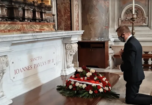 L’unico evento commemorativo si è svolto stamane nella Basilica vaticana: l'ambasciatore della Repubblica di Polonia presso la Santa Sede, Janusz Kotański ha deposto presso la tomba del Papa santo una corona di fiori bianco-rossi (i colori della bandiera polacca) e ha sostato in preghiera nella Cappella di san Sebastiano insieme con la consorte. Successivamente l’Ambasciatore ha condiviso con i giornalisti presenti qualche riflessione circa l’anniversario della morte di Giovanni Paolo II.