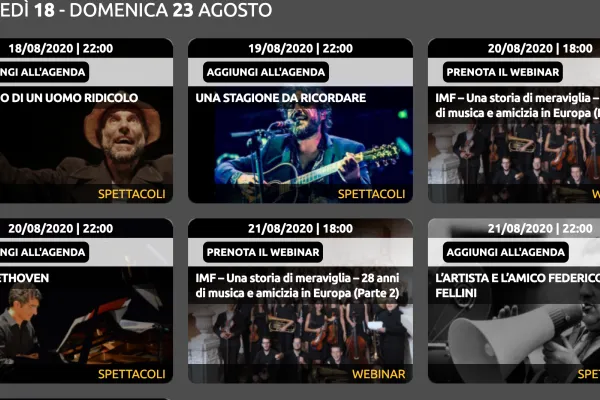 Gli spettacoli, da venerdì 20 a martedì 24 agosto, grazie alla collaborazione del comune di Rimini, si svolgeranno sotto le stelle nella centralissima piazza Tre Martiri, esattamente nell’Arena SGR che può ospitare 750 spettatori. Poi la conclusione mercoledì 25 agosto nell’Arena Lido della Darsena di Rimini con la finalissima del ‘Meeting Music Contest’, competizione per giovani artisti e band sul tema del Meeting ‘Il coraggio di dire io’.