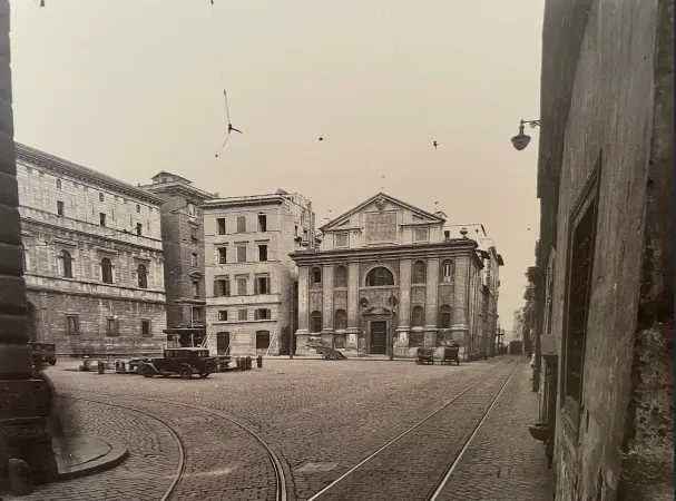 La piazzetta su ci si affacciavano Palazzo Spada, Palazzo dei Convertendi e Palazzo Ruspoli, aveva il quarto lato caratterizzato dalla chiesa di San Giacomo. Il titolo è del 1250 quando nella chiesetta preesistente vennero portate delle reliquie dell’ Apostolo.