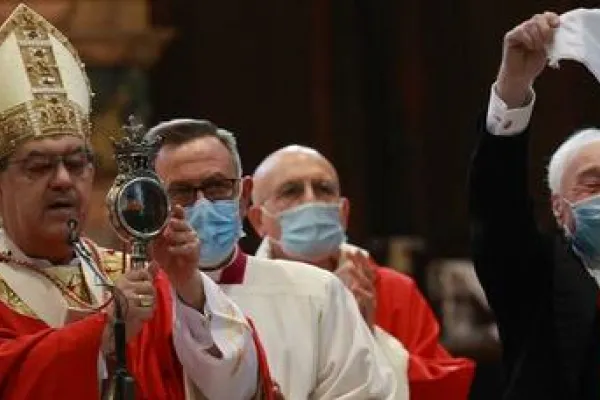 Al termine della Celebrazione, prima della Benedizione , l’Arcivescovo percorrerà la navata centrale portandosi all’esterno della Cattedrale, per esporre ai fedeli e alla Città le ampolle con il Sangue.