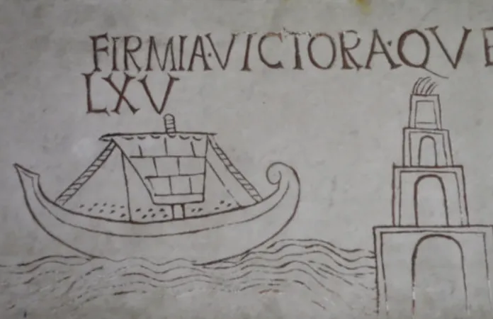 Città del Vaticano, Musei Vaticani. Iscrizione con nave e faro, dettaglio |  | PCAS