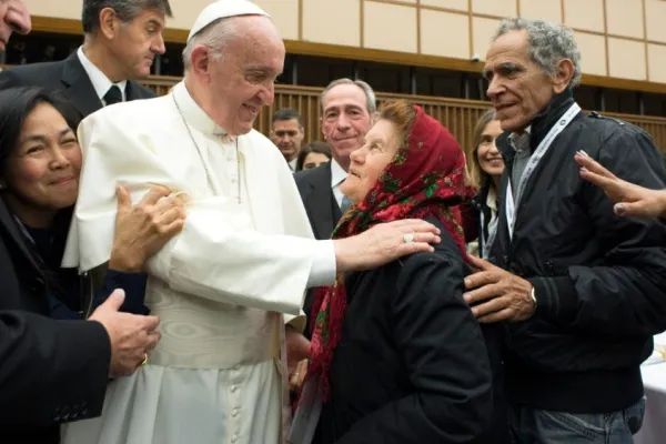 Dalla Porziuncola il Papa sale alla Basilica con un bastone e un mantello dono dei poveri, benedice una pietra della Porziuncola e la dona ad alcuni rappresentanti del rifugio per i senzatetto “Rose di San Francesco” di Tersatto.