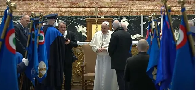 “Ogni giubileo ci ricorda che siamo pellegrini in questo mondo: che non siamo padroni della terra – e tanto meno del cielo – ma siamo incaricati di coltivare e custodire questo giardino nel quale Dio ci ha posti”. Lo ha detto il Papa, stamane, incontrando nella Basilica Vaticana i Rappresentanti dell’Aeronautica Militare Italiana, a conclusione del Giubileo Lauretano nel centenario della proclamazione della Madonna di Loreto quale Patrona di tutti gli aeronauti.