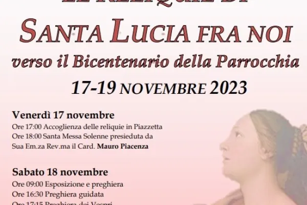 La chiesa di Santa Lucia alla Badia, dal 9 al 14 maggio, aprirà alle ore 10.00 e chiuderà al termine della celebrazione delle ore 19.00.