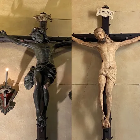 Sotto il pesante intonaco il restauro ha resituito uno splendido Cristo di particolare espressività. Inoltre è stato possibile individuare tracce dell’originaria policromia. Sono stati proprio i tasselli di pulitura a far intuire la presenza e quindi scoprire l’antico Cristo. Il paziente lavoro di bisturi e di scalpello, opportunamente documentato, ha permesso ai presenti di rivivere passo passo questo splendido percorso di recupero di una straordinaria opera d’arte.