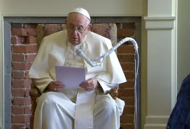 Francesco saluta individualmente i membri della delegazione presente e rivolge a loro anche un discorso.