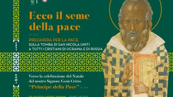 Il prossimo 21 dicembre a Bari si svolgerà una veglia di preghiera per la pace sulla tomba di San Nicola. L'evento è organizzato dalla Conferenza Episcopale Italiana e dall’Arcidiocesi di Bari-Bitonto.