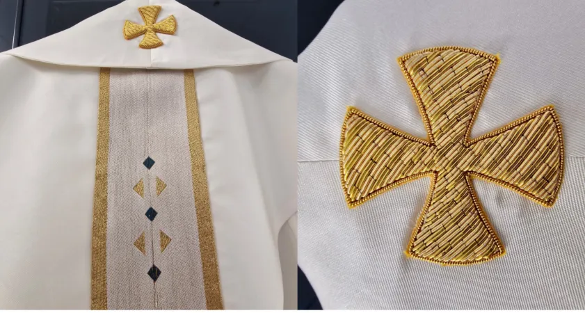 Un regalo speciale oggi per Papa Francesco dalla scuola “Isabella D’Este – Caracciolo” di Napoli: un piviale realizzato nei laboratori dell’istituto. Ideato, progettato e realizzato dagli iscritti all’indirizzo Tessile, Artigianato e Moda, è un dono al papa in occasione del suo decimo anniversario di elezione al soglio pontificio. I decori sono ispirati dalla Chiesa della Pietà dei Turchini dove si venera Maria che scioglie i nodi, che ha ispirato il piviale. “Maria, Icona della Trinità” L’idea progettuale “Maria, Icona della Trinità” è il titolo che è stato scelto per il piviale e che ne ha guidato la realizzazione. Papa Francesco è molto devoto alla Madonna, verso la quale anche i napoletani riservano grande onore e devozione. E proprio a Napoli, in via Medina, da anni si diffonde in tutto il mondo la devozione a “Maria che scioglie i nodi” fatta conoscere da papa Francesco in America Latina durante il suo episcopato a Buenos Aires.