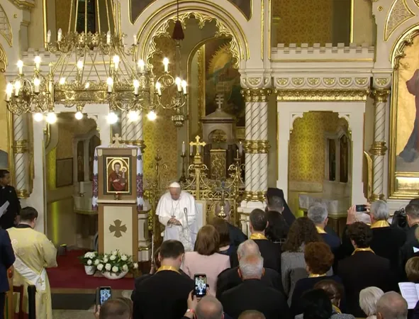 Papa Francesco nella chiesa Protezione della Madre di Dio di rito greco cattolico a Budapest | Vatican Media