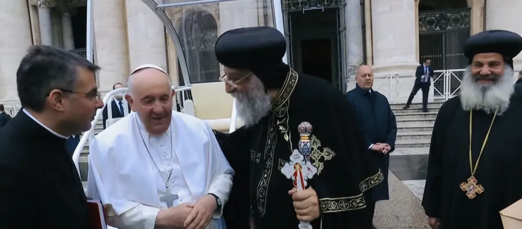 All’Udienza Generale di oggi è presente Tawadros II, Patriarca Copto Ortodosso di Alessandria, giunto a Roma su invito di Papa Francesco per commemorare insieme il 50.mo anniversario dello storico incontro tra San Paolo VI e Papa Shenouda III. Era infatti maggio del 1973 quando Paolo VI incontrò il capo della Chiesa copto ortodossa, Papa Shenouda III. Da quel momento iniziarono un dialogo, un'amicizia e soprattutto un cammino comuni.