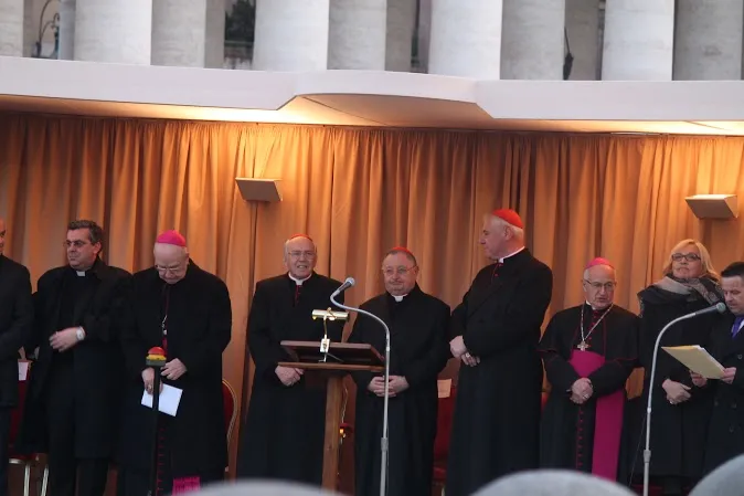 Presenti le autorità locali della Baviera e del comune che ha donato l'albero, che la mattina erano state in udienza dal Papa, e del Trentino. Oltre al cardinale Bertello Presidente del Governatorato, anche il cardinale Mueller prefetto della Congregazione per la dottrina della fede.
