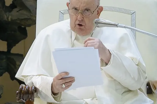 Il Papa introduce la catechesi con il volto e la voce affaticati, e anche quando guida la preghiera a volte è interrotto da qualche spasmo di tosse.