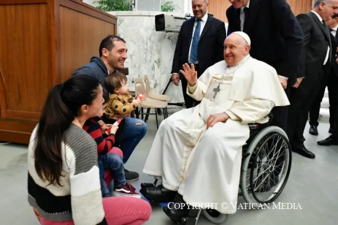 "Non dimentichiamo i popoli che sono in guerra, la guerra è una pazzia, la guerra è una sconfitta, preghiamo...Preghiamo per la gente in Palestina, Israele, Ucraina e tanti altri posti dove c'è la guerra. Anche i nostri fratelli rohingya che sono perseguitati", commenta il Pontefice in Aula Paolo VI.