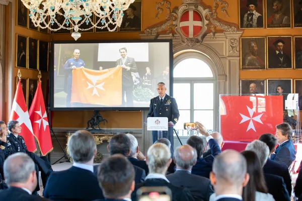 La bandiera con la croce ottagona, anche nota come “bandiera delle Opere”, è il vessillo sotto il quale da quasi mille anni si adoperano in 120 paesi del mondo oltre 150mila persone, tra membri, volontari e dipendenti dell’Ordine di Malta, al fine di alleviare la sofferenza del prossimo e per diffondere il messaggio di pace e di speranza proveniente dal Sommo Pontefice.