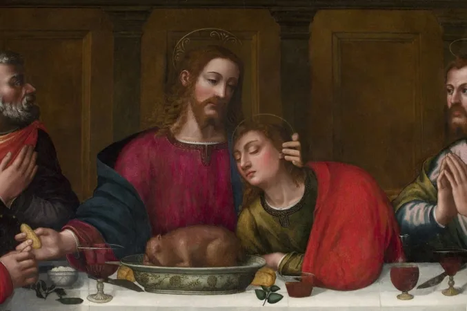 Il viaggio all’interno di queste raffigurazioni che AciStampa propone ai suoi lettori inizia con quella che è considerata dalla critica dell’arte come una delle più antiche rappresentazioni dell’episodio evangelico. E’ L’Ultima cena, conservata nell’antica basilica di Sant’Apollinare Nuovo a Ravenna, databile intorno al VI secolo. Cristo - vestito con abito purpureo, il viso con barba folta, il capo con il nimbo crucisegnato - è rappresentato con i dodici Apostoli attorno ad un tavolo tricliniare a forma di ferro di cavallo. Sullo sfondo, un bellissimo oro. Un elemento va evidenziato: manca il vino, mentre al centro della tavola, su un vassoio, trovano posto due grossi pesci, chiaro riferimento al miracolo della moltiplicazione.