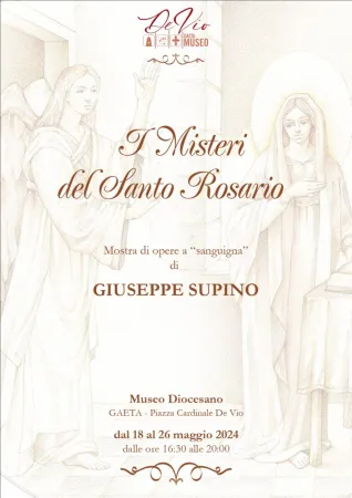 Una mostra particolare quella che ci sarà dal 18 al 26 maggio presso il Museo diocesano di Gaeta. Protagonisti "I misteri del Rosario" realizzati nelle opere "a sanguigna" del professore Giuseppe Supino, maestro assoluto in questa particolare tecnica, "autore di un tratto unico e immediatamente riconoscibile".