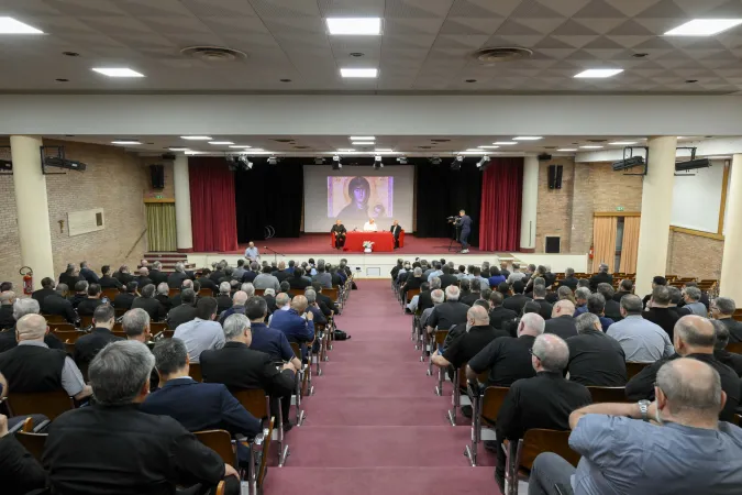In un comunicato, la Sala Stampa della Santa Sede rende noto che “Dopo un breve saluto di S.E. Mons. Di Tolve e un momento di preghiera, si è aperto il colloquio tra il Papa e i preti presenti”.
