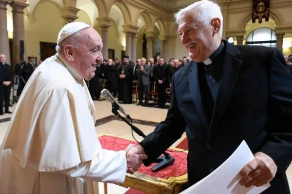 Francesco, ovviamente, non può non parlare della Compagnia di Gesù. “Ho partecipato – ha raccontato - all’elezione di padre Kolvenbach, dove c’era già un gruppo di gesuiti spagnoli che accusavano la Compagnia di tradire la Chiesa. In quel momento di crisi della Compagnia di Gesù fu molto importante avere un padre Generale carismatico. E lì ho visto dispiegarsi le tensioni nella Chiesa. Dopo, ci sono stati momenti che sono stati interpretati come scontri, come quando san Giovanni Paolo II è andato a trovare padre Arrupe, che era già malato. Ed è stato nominato il padre Dezza per guidare temporaneamente la Compagnia in quel tempo. Alcuni lo additavano come un conservatore che avrebbe avuto un impatto negativo. E invece è stato un grande. Lui ci ha aiutati a capire come si governa la Compagnia nella tempesta. Voi qui avete dovuto pilotare diverse tempeste. Imparate da questa tradizione nei tempi difficili della Compagnia”.
