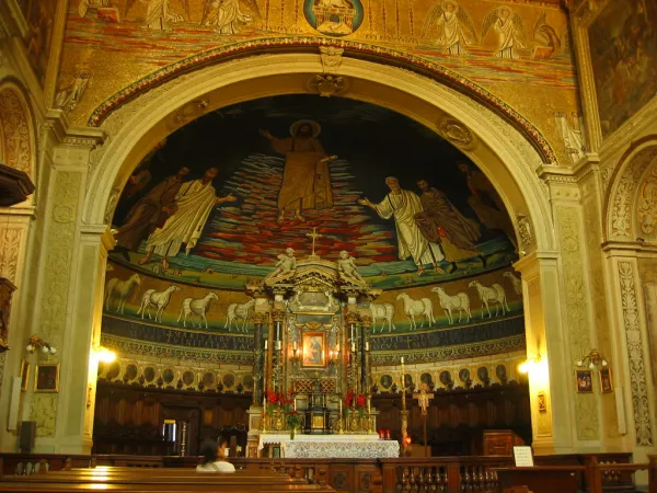 Il catino dell'abside fu decorato intorno al 530 a mosaico con una scena rappresentante l'accoglienza nei Cieli dei due santi titolari della chiesa. Nel tamburo sottostante sono rappresentati gli apostoli sotto forma di pecore.