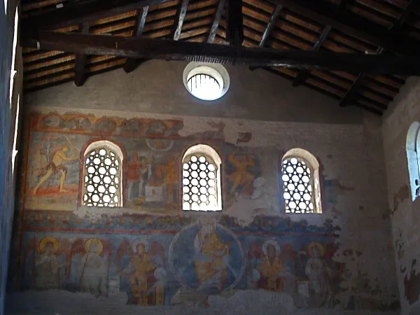 Le pareti della navata conservano delle bellissime pitture medievali. La chiesa sarà poi trasformata nel Barocco, ma viene riportata alla sua forma medievale tra il 1913 e il 1915. Dopo il restauro la chiesa ha l’aspetto che doveva avere nel 1191. L’abside è unica a Roma perché è esternamente poligonale come quelle delle chiese di Costantinopoli nel V e VI secolo.