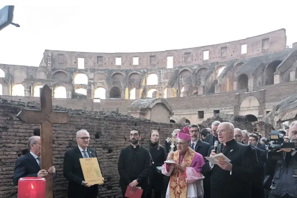 "La Croce ci rende fratelli", così Monsignor Franco Camaldo, Assistente Ecclesiastico del Circolo S. Pietro, ha dato il via alle meditazioni della tradizionale Via Crucis del Sodalizio Romano all’interno del Colosseo, nella serata venerdì dell'11 aprile.