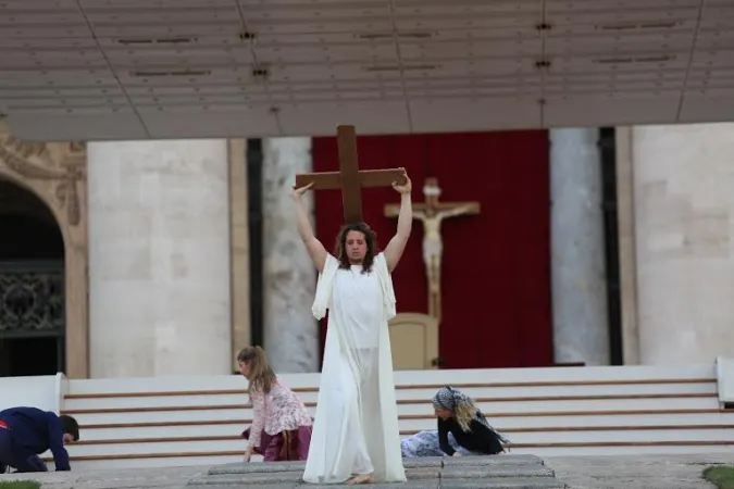 La Veglia di preghiera della Divina Misericordia si è aperta con uno spazio dedicato ad alcune testimonianze e all’animazione, in un clima di serenità e di festa, proprio come avrebbe voluto San Giovanni Paolo II. Tantissimi i richiami a Papa Wojtyla in questo spazio: filmati, citazioni, canti, coreografie.