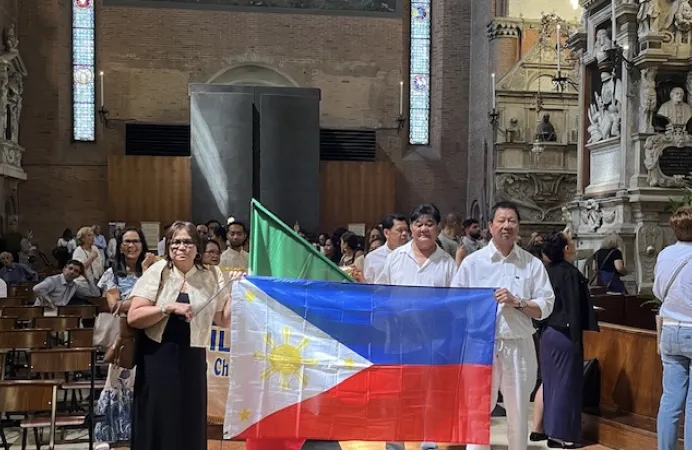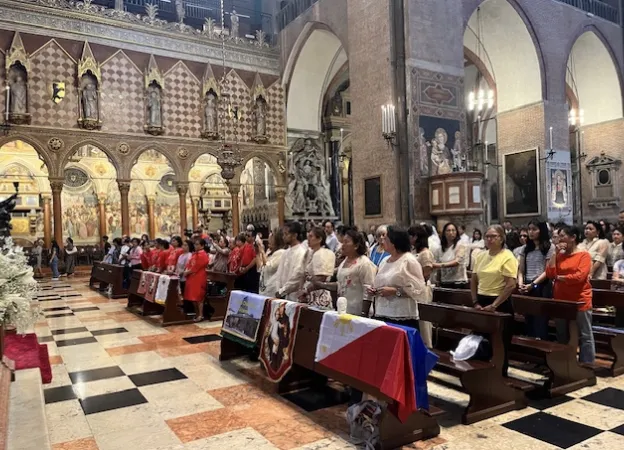 Canta il Coro nella sua lingua, danzano le signore vestite di rosso negli abiti tradizionali aprendo la processione che conduce padre Paolino, missionario verbita e responsabile della Comunità Filippina, dalla Navata centrale sino al Presbiterio della Basilica per celebrare la Liturgia. I saluti del Rettore, padre Antonio Ramina, danno il via alla gioiosa e partecipata celebrazione.