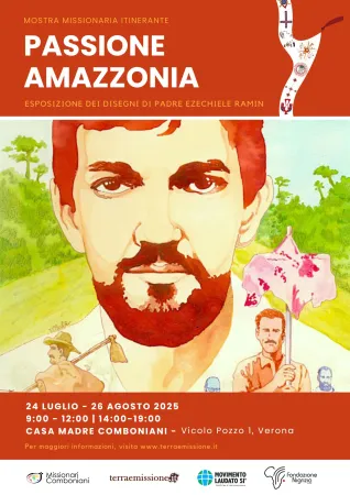 Nel contesto del cammino verso il Giubileo dei Giovani 2025, che si svolgerà a Roma dal 28 luglio al 3 agosto, un gruppo di giovani pellegrini provenienti da Spagna, Grecia, Sudan, Sud Sudan, Polonia, Inghilterra, Egitto, Congo e Kenya farà tappa a Verona, ospiti della Casa madre dei Missionari Comboniani. Qui, dal 24 luglio al 26 agosto, è allestita la mostra “Passione Amazzonia”, a cura della Famiglia Comboniana, dell’associazione Terra e Missione, della Famiglia Ramin e del Movimento Laudato Si’.