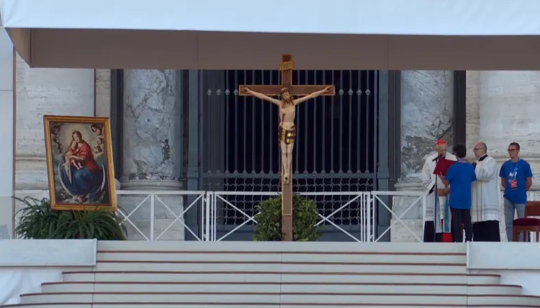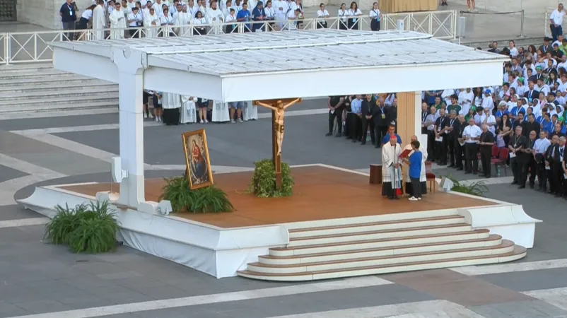 Dopo la Liturgia della Parola, e la benedizione dell'acqua e del fuoco, una serie di preghiere che iniziano con la parola "Credo" hanno riunito i ragazzi della Piazza.