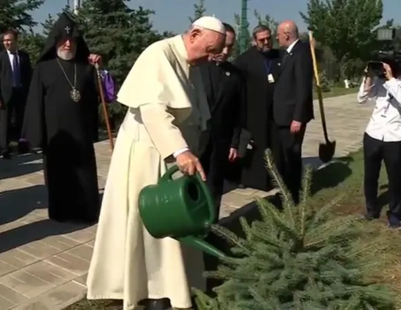 La seconda giornata armena di Papa Francesco ha avuto inizio con la visita al Mausoleo di Tzitzernakaberd, dedicato alla memoria delle vittime del Metz Yeghérn, il genocidio del popolo armeno avvenuto per mano dell’Impero Ottomano a partire dal 1915. Insieme al Catholicos Karekin II e al presidente della Repubblica Armena, il Papa ha omaggiato le vittime e recitato una preghiera per poi innaffiare un albero a memoria della visita.