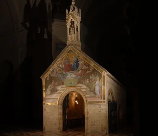 E proprio nella Porziuncola, scrive mons. Sorrentino, san Francesco è stato trasfigurato dalla Grazia di Dio: “E mentre il dio-denaro ha scompaginato la sua famiglia carnale, una cappella povera e disadorna accoglie e plasma la sua famiglia spirituale. ‘Non più padre Pietro di Bernardone, ma Padre nostro che sei nei cieli’: dalla spogliazione all’indulgenza della Porziuncola corre il cammino di un uomo trasfigurato. Trasfigurato per trasfigurare: dando la notizia del ‘perdono’, il 2 agosto 1216, Francesco esclamò: ‘Io vi voglio mandare tutti in Paradiso!’. La Porziuncola diveniva una porta del cielo. Aperta soprattutto per i semplici e poveri. Casa dove la presenza di Dio si percepisce come una carezza e le pietre hanno il calore di un grembo materno. Tutto vi dice semplicità, non disturbata, anzi evidenziata, dall’arte che la decora, specialmente nell’Annunciazione in cui la Vergine è tutta ascolto, plasmata dallo Spirito, pronta per l’incarnazione del Verbo di Dio”.