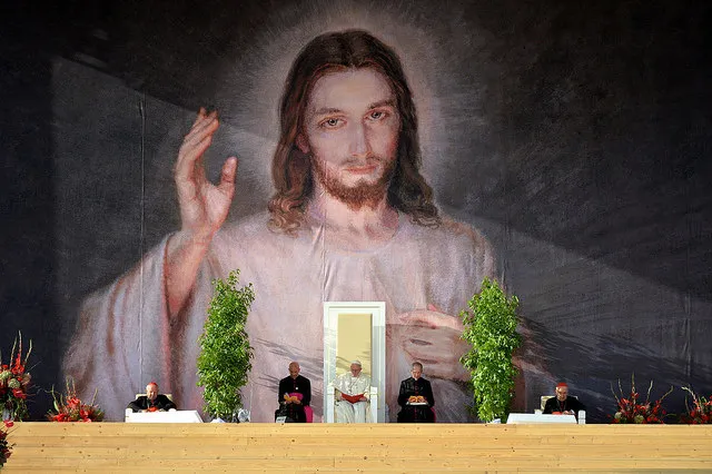 Stazione per stazione scorrono le varie opere di misericordia e ogni volta qualcuno prende la croce: la Comunità di S. Egidio, la Società d’aiuto ai senzatetto di San Fra Albert (Sant’Alberto Chmielowski, famoso apostolo dei poveri. Cracovia 1845-1916. Beatificato nel 1983 e canonizzato nel 1989 da San Giovanni Paolo II); Aiuto alla Chiesa che soffre (Kirche in Not); La Casa della Madre Sola - “Finestra della Vita” – (La iniziativa “Finestra della vita” è stata iniziata nel 1999 da una donna pastore tedesca, Strangl, per accogliere i bimbi che le madri sole non potevano tenere con sé, poi si è allargata alla accoglienza delle madri sole e ha molte case in vari Paesi. In Polonia vi sono 58 case, il gruppo che presenta la Stazione viene da Danzica dove ha iniziato nel 2006. La iniziativa ha contribuito a ridurre i numeri degli infanticidi): La Comunità L’Arche (fondata da Jean Vanier per l’accoglienza dei disabili, soprattutto mentali, in comunità); “Barca” – Association of Mutual Help (Fondata nel 1998 a Poznan nasce per il reinserimento degli ex carcerati, ma poi si sviluppa allargando la sua assistenza a disoccupati e senza tetto); Il progetto “Magdalena” (Attività della Congregation of the Sisters of Our Lady of Mercy, cioè della comunità in cui ha vissuto Santa Faustina: consiste in case per accogliere giovani ragazze, madri sole…E’ presente in Polonia, ma anche altrove, ad es. a Cuba); “La fermata ‘Gesù’” (Iniziativa polacca di evangelizzazione dei giovani, che viene attuata ogni anno dai giovani cattolici a margine di un grande Festival giovanile “Woodstock”, per offrire ai giovani partecipanti, di solito “lontani” dalla Chiesa, una occasione di incontro, preghiera, dialogo spirituale…); la Comunità “Cenacolo” (Fondata da Madre Elvira nel 1983 in Italia a Saluzzo, in Piemonte, in particolare per l’accoglienza e il recupero e reinserimento dei tossicodipendenti); L’opera d’aiuto di Padre Pio (Animata da Cappuccini e volontari, si occupa di senzatetto, dando aiuto materiale, psicologico, spirituale, legale…Ha due centri e sette “case famiglia” a Cracovia); le Suore Missionarie di Carità di Madre Teresa di Calcutta; La comunità “Il Pane della vita” (Fondata da Suor Chmielewska, una carismatica religiosa polacca che ha adottato alcuni bambini, si occupa dei poveri, di persone handicappate, di borse di studio per aiutare i bimbi poveri…In Polonia vi sono sette case per anziani e senza tetto, con 1000 ospiti circa… ) ;“L’ospedale domestico” (Iniziativa di un sacerdote polacco e giovani collaboratori per reagire contro la diffusione della prostituzione e delle forme di propaganda di dissolutezza sessuale nella società attuale. Offre luoghi di riferimento per la preghiera, l’adorazione, il dialogo spirituale e umano nella città, ecc.) e “L’Ospizio di San Lazzaro” (Hospice per l’assistenza ai malati terminali).