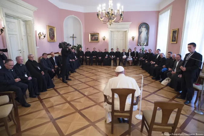 Lo fa spesso Papa Francesco nei suoi viaggi, i confratelli gesuiti li incontra a parte in privato. Un po’ un modo di esercitare il ruolo del Preposito. E del resto i gesuiti hanno quel quarto voto che li lega in modo specialissimo al Papa e se il Papa è uno di loro il legame diventa un unicum nella storia della Chiesa cattolica.