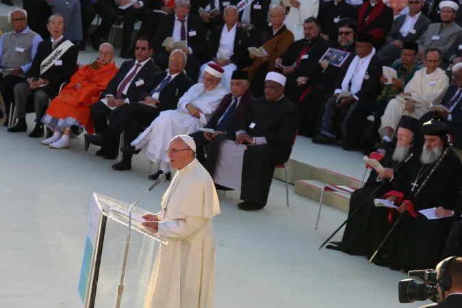 C’è il Rabbino Abraham Skorka, Abbas Shuman, Vice-Presidente dell’Università Al-Azhar (Gijun Sugitani, Consigliere Supremo della Scuola Buddista Tendai e con loro e vescovi cattolici, sul palco arriva Tamar Mikalli, fuggita da Aleppo. Parla Bartolomeo I, David Brodman, Rabbino di Israele; Koei Morikawa, Patriarca del Buddismo Tendai Din Syamsuddin, Presidente del Consiglio degli Ulema . Ed è poi Papa Francesco a ricordare a tutti quelli che hanno sete di pace che “è dono di Dio e a noi spetta invocarla, accoglierla e costruirla ogni giorno con il suo aiuto”.