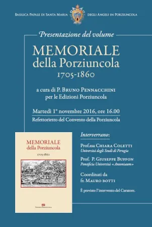 Il Memoriale sarà presentato Martedì 1° novembre 2016, alle ore 16.00 e interverranno la prof.ssa Chiara Coletti, della Università degli Studi di Perugia, ed il prof. P. Giuseppe Buffon, della Pontificia Università “Antoniaum”. È previsto l’intervento del Curatore che, trovandosi dinanzi ai numerosi e sostanziali cambiamenti occorsi in ambito linguistico, ortografico e sintattico nell’ampio arco di tempo (1705 – 1860), dichiara: “ho scelto comunque di conservare il testo manoscritto così come giace, senza prendermi la libertà di correggere alcunché; ho conservato intatti anche errori evidenti, dovuti a incompetenze o distrazioni degli amanuensi”.