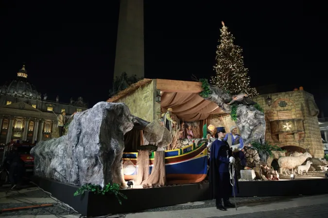 Inoltre, durante la cerimonia, l’intervento del Presidente del Governatorato, il Cardinale Giuseppe Bertello: “Dal 1982 San Giovanni Paolo II – commenta il Presidente - ha voluto che pellegrini e turisti potessero sostare e meditare davanti al presepio. L’albero è il simbolo della vita e il presepio accanto ci ricorda che il Signore della vita è venuto in mezzo a noi, per dare la Sua vita per noi. Significativa quest’anno la presenza di un barcone con la quale i migranti tentano di sfidare il mare in cerca di raggiungere l’Europa e una vita migliore”.