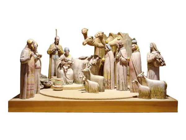 Poi i presepi pugliesi in cartapesta dai colori caldi che l’abile mano dell’artista ha reso naturali, quasi vivi. I presepi in terracotta provenienti da Caltagirone, località che ha un’ampia produzione artigianale. Non manca poi la fantasia: presepi con bicchieri di plastica, con ventagli, con materiale elettrico della miniera di Serbariu, con 45 Kg di pasta alimentare e riso, con biscotti, cioccolata, caramelle; poi i presepi in miniatura in un guscio di noce, in una vongola.