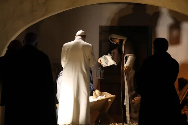 Terminata la preghiera del Vespro il Papa come tradizione si è recato a vistare il Presepe della piazza dove si è soffermato a lungo facendosi spiegare la costruzione e i simboli.