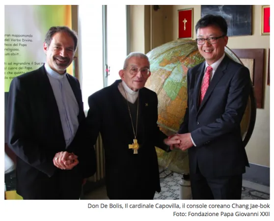 L’obiettivo è di terminare il recupero conservativo entro febbraio 2016. Ha esposto nel dettaglio le caratteristiche peculiari del mappamondo e le curiose informazioni che esso offre sulla presenza della Chiesa cattolica nel mondo agli inizi degli anni Sessanta del XX secolo. Alla presentazione bergamasca dell'iniziativa era presente la delegazione ufficiale della Repubblica di Corea, con il Console Generale a Milano, S.E. Sig. CHANG Jae-bok, il Console KOH Kyungsok, la Dott.ssa KIM Noori, funzionaria del Consolato Generale. La Repubblica di Corea si è mostrata particolarmente sensibile e interessata al progetto di restauro di questo pezzo unico nel suo genere e di grande significato storico-culturale garantendo il suo contributo. Inoltre l’opera di restauro prevede l’impiego di carta hanji, pregiata e molto antica, particolarmente adatta a questo tipo di lavorazione. A proposito della Corea Papa Giovanni XXIII, nell’Udienza del 22 luglio 1949 a un diplomatico coreano, diceva: «Il nuovo Incaricato di Affari della Corea è un Confucianista che ama però i cattolici». Il Card. Loris Capovilla, per anni segretario personale di San Giovanni XXIII, ha voluto ricevere personalmente la delegazione guidata dalla Fondazione presso Ca’ Maitino, esprimendo il suo ringraziamento alla Repubblica di Corea per il prezioso contributo.